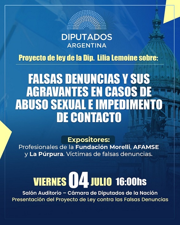 En el Salón Auditorio del Congreso Nacional se realizó el 4 de julio del 2025 la presentación del proyecto de Ley de la Diputada Lilia Lemoine sobre Falsas denuncias de abuso sexual e impedimento de contacto.